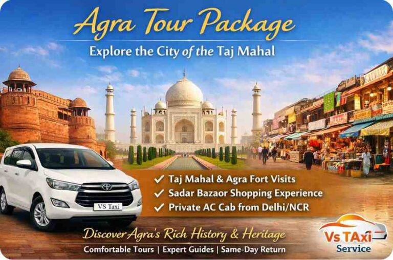 Experience the iconic Taj Mahal and Agra’s top heritage sites with a One Day Agra Tour from Delhi by VS Taxi Service. Travel comfortably from Delhi/NCR in a private, air-conditioned cab with a professional driver. Enjoy a smooth Yamuna Expressway drive, flexible sightseeing, transparent pricing, and a stress-free return the same evening. Ideal for families, couples, and business travelers looking for a reliable same-day Agra trip by car.